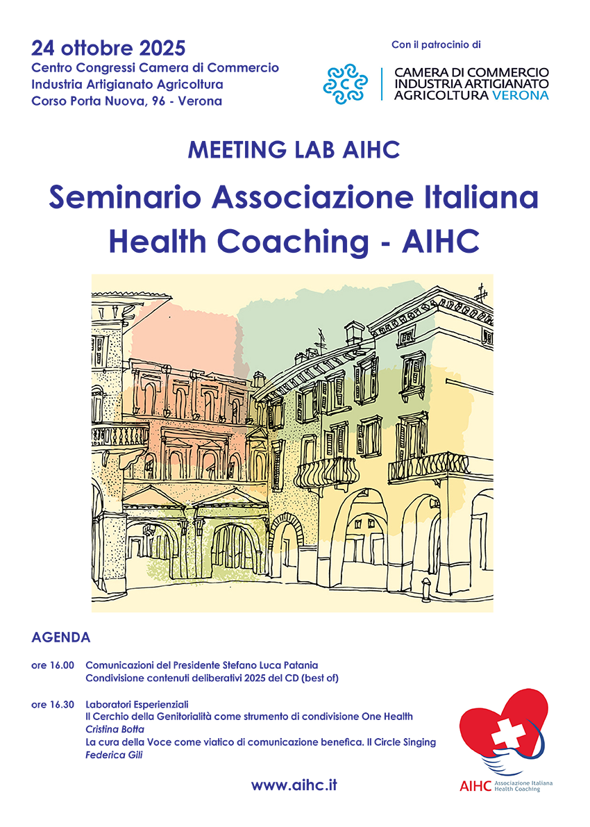 Il MEETING LAB AIHC , significativo appuntamento olistico, replicato annualmente dall'ASSOCIAZIONE ITALIANA DI HEALTH COACHING , quest’anno si terrà a Verona il 25 ottobre, al Centro Congressi della Camera di Commercio.